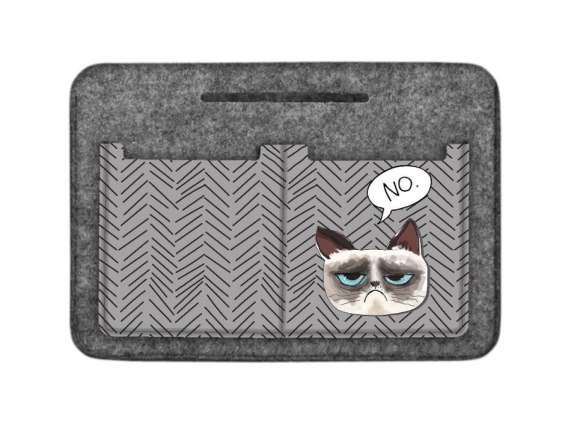 Organizer filcowy do torebki marki Bertoni wykonany z szarego filcu z wzorem przedstawiającym kota mówiącego NO.