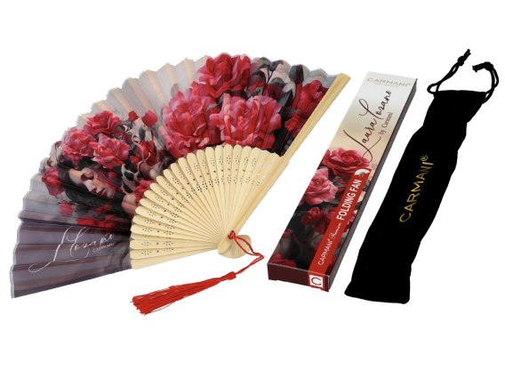 Wachlarz czerwone kwiaty - L. Lozano, Lady's Floral Symphony (CARMANI)